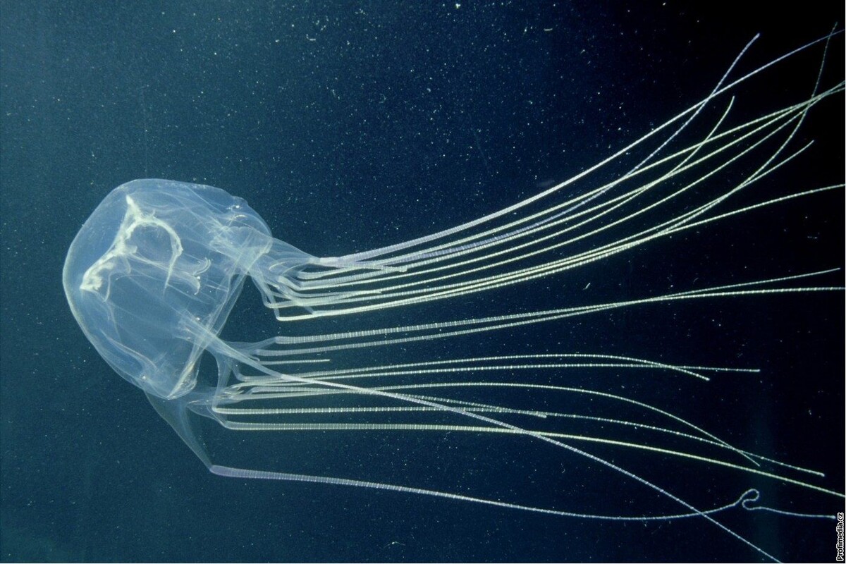 Почему опасна: Это самое ядовитое морское животное в мире. Ее щупальца, которые могут достигать в длину 3 метров, покрыты стрекательными клетками с нервно-паралитическим ядом. Укус вызывает мучительную боль и может привести к остановке сердца и смерти за считанные минуты.
