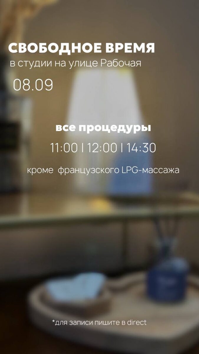 СВОБОДНОЕ ВРЕМЯ НА РАБОЧЕЙ 08.09 • ONLINE запись • WHATSAPP Ждём вас к нам на процедуры 🤍