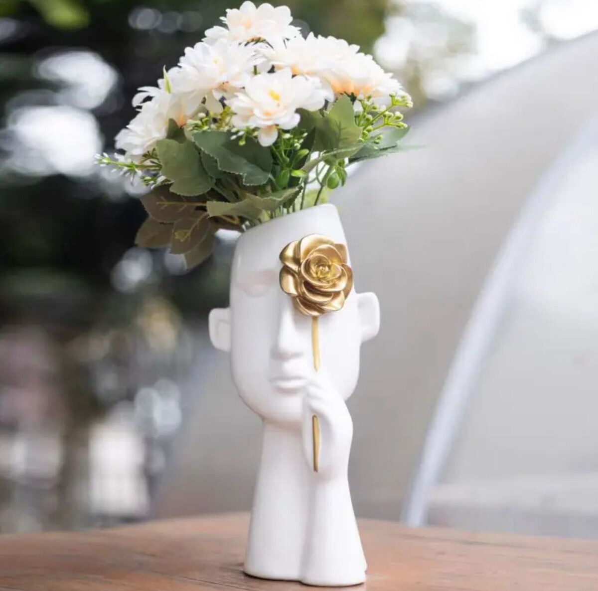 А вот эти вазы мне показались интересными. Тема лиц уже сильно заезжена. Но тут лицо с рукой. И это симпатично смотрится. Черная ваза - 26 см, белая ваза - 27 см.
