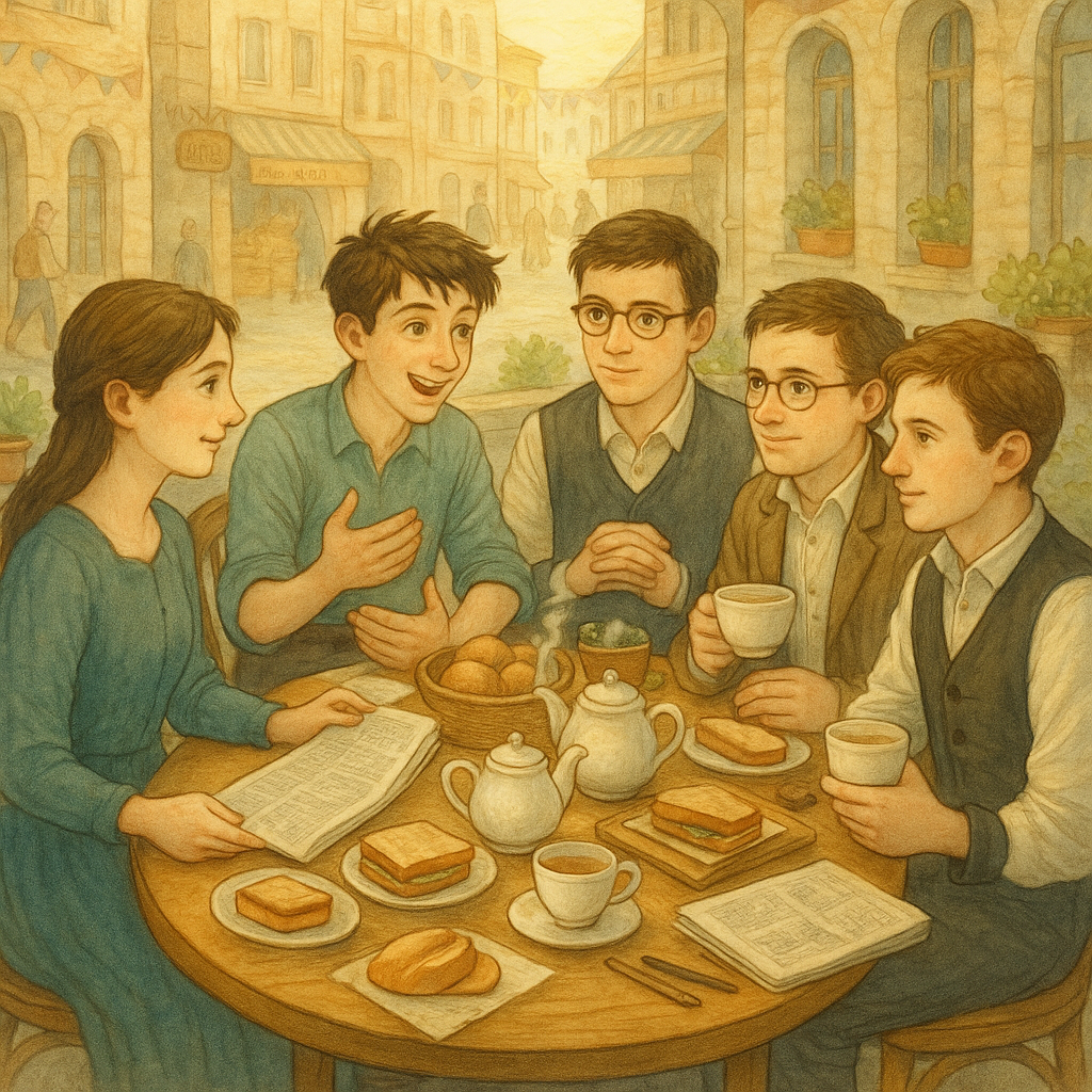 Постепенно народу в кафе становилось все больше. Ребята и не заметили, как терраса наполнилась горожанами. Как и говорил Джоф, на веселую компанию бросали раздраженные взгляды – подумать только, они сидят тут который час, занимают лишнее место, смеются в голос, мешая своими воплями отдыхать другим. Но путники не обращали на это ни малейшего внимания – все до единого были заняты беседой. Часы пробили один раз, солнышко начало припекать, доказывая, что сегодняшний праздник принадлежит именно ему. Через какое-то время Лу, потянувшись, спросил у бирианца: