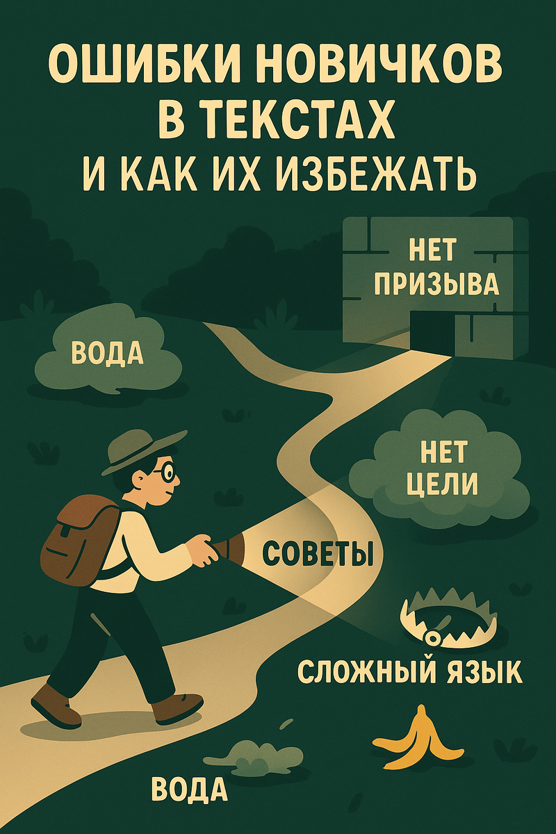 Чаще всего причина проста — типичные ошибки. Разберём самые распространённые и посмотрим, как их исправить. Как выглядит ошибка: «Наш магазин — это уникальное пространство, где мы предлагаем невероятно широкий ассортимент товаров для самых взыскательных покупателей». Фраза длинная, нагруженная словами «уникальное», «невероятно», «взыскательных» — но сути нет. Почему плохо: читатель тратит усилия, чтобы вытащить из текста главное, и чаще всего просто уходит. 👉 Решение: пиши коротко и ясно, убирай всё лишнее. «У нас большой выбор смартфонов по цене от 10 000 ₽». Как выглядит ошибка: «Мы более 10 лет на рынке, мы предлагаем широкий выбор, мы гарантируем качество». Почему плохо: клиенту неинтересно, что делает компания — он хочет понять, что получит он. 👉 Решение: переформулируй текст на «вы». «Вы получаете смартфон с гарантией 2 года и бесплатной доставкой». Как выглядит ош