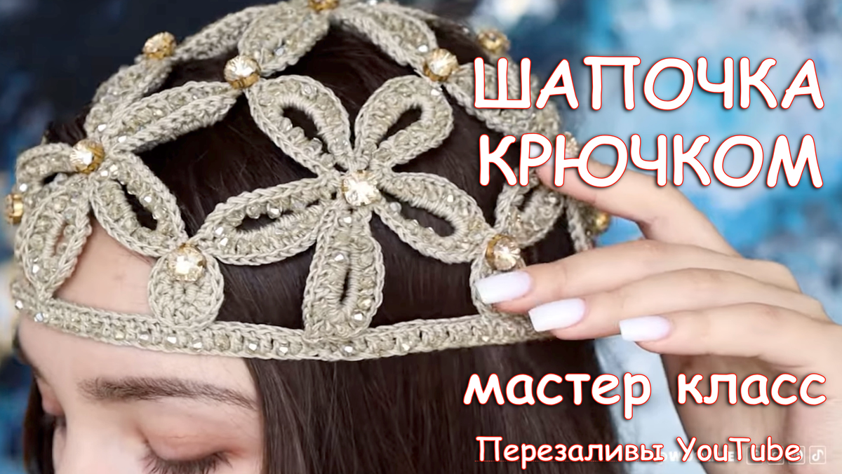 ВЯЗАНАЯ КРЮЧКОМ АЖУРНАЯ ШАПОЧКА С БУСИНАМИ
