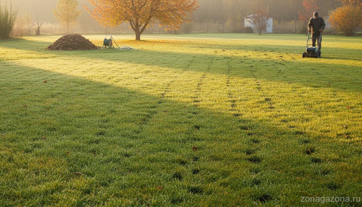 За окном сентябрь… Основные сельскохозяйственные работы завершены, дачники ждут бабьего лета, чтобы насладиться отдыхом. Но нельзя забывать, что некоторые объекты ландшафтного дизайна требуют постоянного ухода. Среди них – зеленая лужайка, которая так радовала вас летом. Необходимо выполнить ряд работ, чтобы она была подготовлена к зиме. Уход за газоном в первый осенний месяц необходим, мы расскажем, что важно сделать прямо сейчас, чтобы травяное покрытие хорошо пережило суровые климатические условия. Какой вы хотите увидеть газонную траву весной? Зеленой, мощной, сочной или хилой, пожелтевшей, с проплешинами? От того, как вы потрудитесь в сентябре, зависит ответ на этот вопрос. В сентябре природа готовится к зимовке, прекращается сокодвижение, затормаживается процесс роста. Топ-5 основных сентябрьских дел включает: Остановимся более подробно на каждом из них. Газонное покрытие образует плотную дерновину, сплетение корней, которые не пропускают в почву кислород. Чтобы снабдить корневую