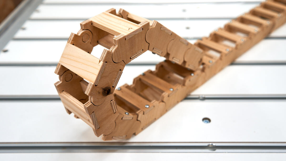 На верхней балке портала (гантри) моего станка не было кабельной цепи, и я подумал, что это хороший повод сделать двухстороннюю деталь. Кабельная цепь служит для orderly укладки кабелей и предотвращает их запутывание или зацепление во время работы станка.