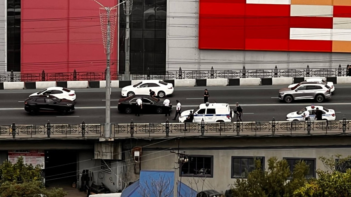 ©В Махачкале, на мосту по пр. Петра Первого, сотрудники полиции устроили пробки, создав «пост» прямо на мосту."