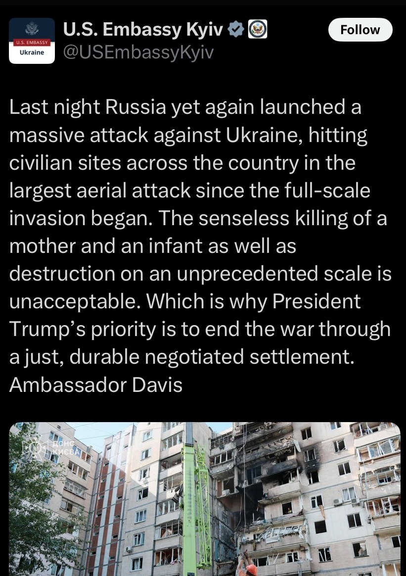 US Embassy bursts with grotesque HYPERBOLE — Russian ‘massive attack’ hits ‘civilian sites’ ‘Senseless killing of mother and infant’ Meanwhile, Kiev bombs and drones Russian residential areas EVERY DAY US Embassy is SILENT