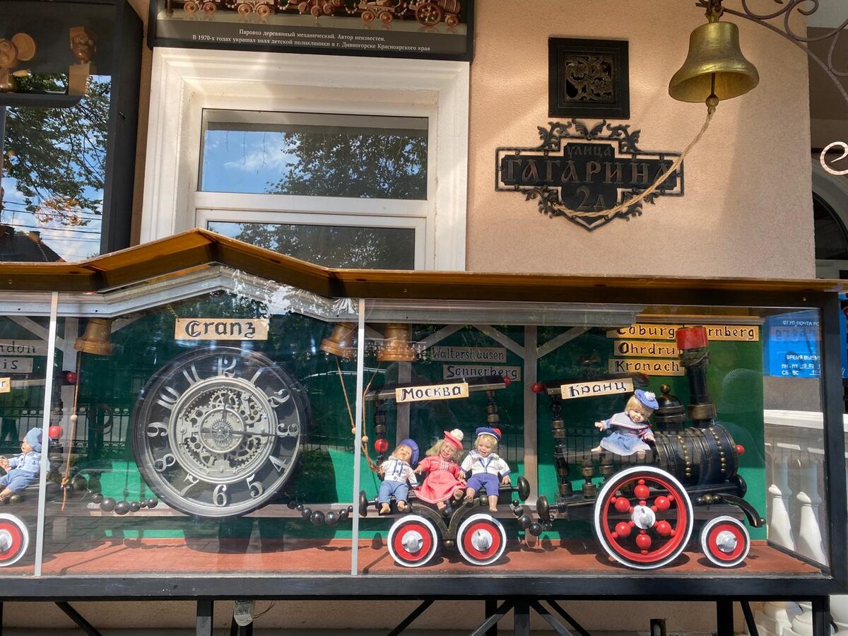Разные есть музеи: исторические, технические, художественные, естественных наук, а в Зеленоградске есть музей, который погружает в детство. Посещение этого музея как путешествие назад в прошлое. Называется он "Музей старинных игрушек". Это частная коллекция Натальи Сафоновой. . Витрина с движущимися игрушками у входа в красивый особняк зазывает: "не проходите мимо". Зашли. Удивительное место. Как в сказку попала. Или в детство. Частично в своё, частично в чужое и незнакомое. Коллекцию кукол Наталья начала собирать 30 лет назад и продолжает пополнять её до сих пор. Самые старые куклы изготовлены в 1810 году во Франции. Есть в музее и настоящие раритеты- портретные куклы исторических личностей. Например, кукла королевы Луизы Прусской, созданная к 100-летию со дня смерти королевы. Её соседка -кукла в русском- народном наряде находится по соседству не просто так, ведь королева Луиза была бабушкой русского царя Александра II. Шикарная кукла «великого комбинатора» и «идейного борца за де