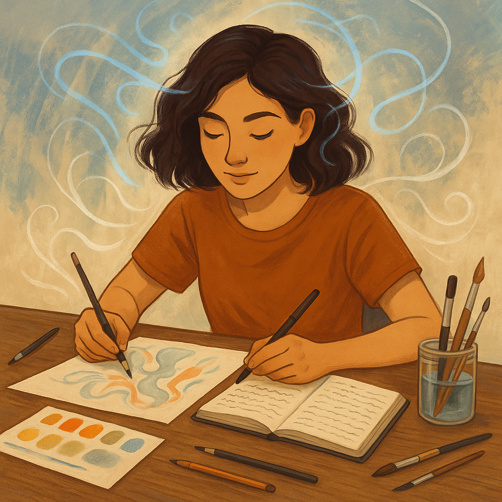 Рубрика: Психология и самопознание Когда слова не помогают, на помощь приходит творчество. Простые практики — рисование, нейрографика, письмо от руки — открывают путь к подсознанию и внутреннему ресурсу. Не все умеют говорить о чувствах. Иногда эмоции остаются внутри, застревают и превращаются в напряжение. Но у нас есть универсальный язык — творчество. Оно помогает выразить то, что словами не объяснить. Рисование. Это не про умение красиво рисовать, а про сам процесс. Когда мы берём в руки карандаши или краски и начинаем двигаться по листу, подсознание проявляет себя в линиях и цветах. Даже простые каракули могут показать настроение, снять внутреннее напряжение и вернуть контакт с собой. Нейрографика. Современная методика, которая помогает переписать внутренние сценарии. Суть в том, чтобы через особые линии и фигуры вывести из подсознания конфликт или задачу, а потом "переплести" его в новый гармоничный образ. Это работает как диалог с мозгом — мы буквально переписываем нейронные связ