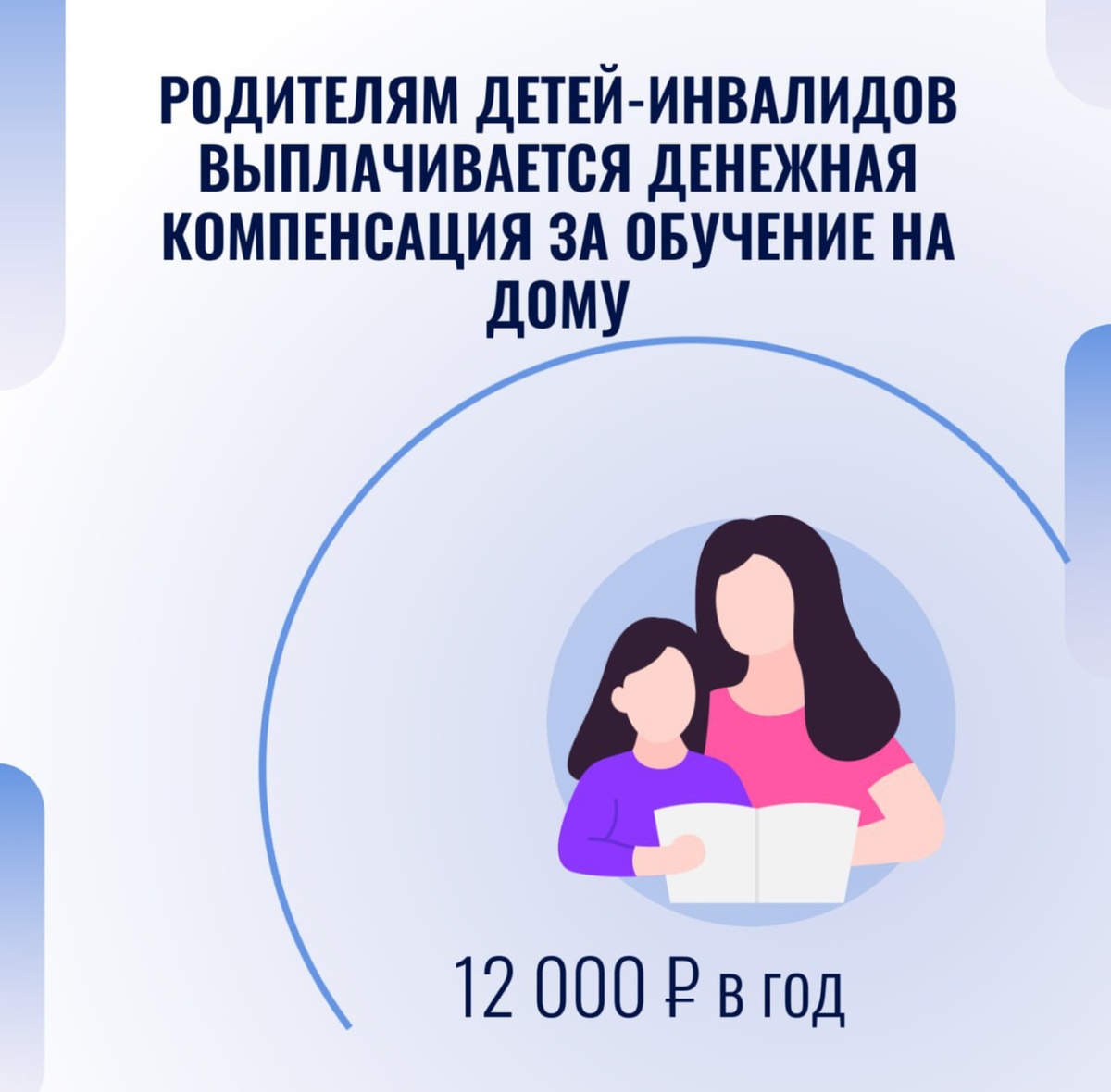 Денежная компенсация на воспитание и обучение ребенка-инвалида дошкольного возраста 📌 Право на денежную компенсацию имеет один из родителей (законных представителей), постоянно проживающий на территории Республики Бурятия и самостоятельно осуществляющий воспитание и обучение на дому ребенка-инвалида, не посещающего дошкольное образовательное учреждение. 💁♂️ Денежная компенсация установлена с 1,5 лет и до момента поступления ребенка в 1 класс образовательного учреждения, но не позже достижения им возраста 8 лет. ✅ Размер денежной компенсации 12 000 рублей. 📃 Заявитель вправе предоставить самостоятельно справку о непосещении ребенком-инвалидом дошкольной образовательной организации. 👉 Подать заявление можно в МФЦ, соцзащите по месту жительства.