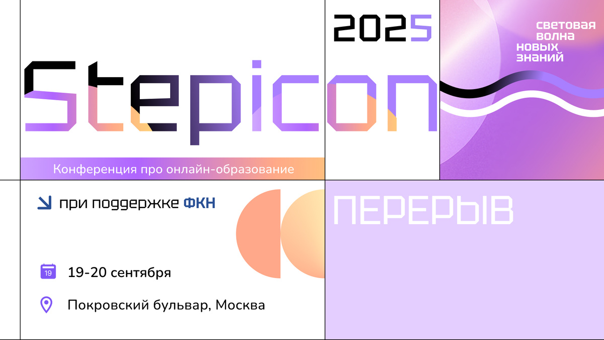 19–20 сентября 2025 года в Москве пройдёт Stepicon – конференция Stepik для авторов онлайн-курсов, партнёров Stepik, представителей других образовательных площадок и всех, кто делает онлайн-образование понятным, честным и живым.