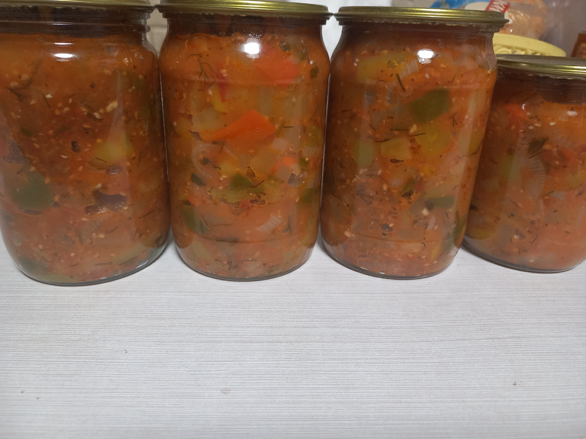 Всем привет! Многие помнят соус из 90-х Uncle Bens (Анкл Бенс), который регулярно рекламировали по телевидению. Это был томатный соус с кусочками овощей и обладал он кисло-сладким вкусом. В дальнейшем хозяйки стали сами готовить подобный соус и консервировать его на зиму. И моя мама готовила подобный салат, она называла его именно салат "Анкл Бенс" , а не соус. Обычно такой салат был добавкой к рису, макаронам, картофелю, мясу и курице. Можно было просто положить пару ложек салата на кусочек хлебушка и будет тебе счастье! Сейчас осень и все овощи есть в наличии, поэтому успеваем сделать несколько баночек такого салата на зиму. Способ приготовления: Кабачок моем , чистим от кожуры, нарезаем кубиком. Перец болгарский моем, убираем семечки и перегородки режем соломкой. Помидоры моем, место плодоножки убираем и режем помидор на 4 части. Репчатый лук чистим от шелухи, моем и нарезаем полукольцами (фото забыла сделать). Помидоры измельчаем любым удобным способом: мясорубка, блендер или и