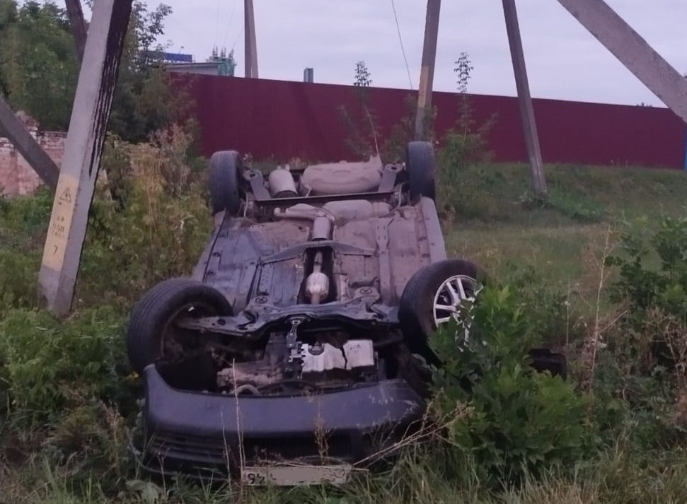 В Курской области "Шкода" врезалась в опору ЛЭП и перевернулась
