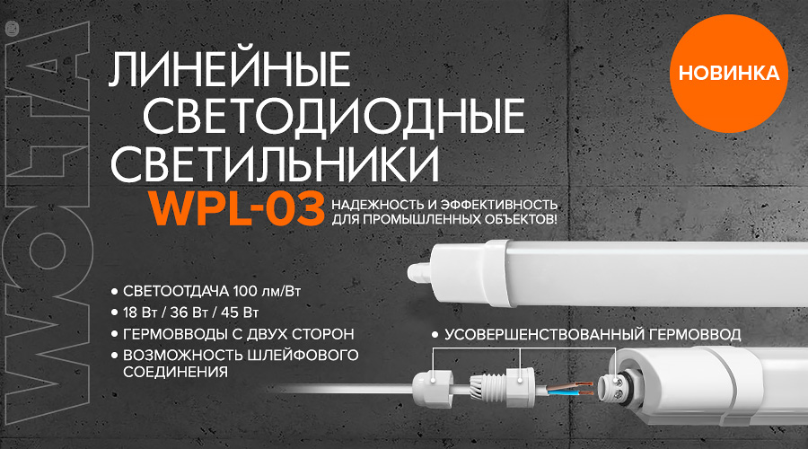 WPL-03 от WOLTA станут идеальным решением для общего освещения производственных и подсобных помещений с повышенным содержанием пыли и влаги. Например, для использования на складах, парковках, в автосервисах, мойках, гаражах, подсобных помещениях и ЖКХ, а также для наружного освещения под навесом. WPL-03 отличается широким диапазоном входного напряжения – 165-265 В, что обеспечивает стабильную работу даже при перепадах напряжения. Высокая световая отдача до 100 лм/Вт делает светильники энергоэффективными и экономичными. Низкий коэффициент пульсации ≤5% обеспечивает комфортное освещение без мерцания. Пожаропрочный корпус и рассеиватель из поликарбоната гарантирует высокую степень защиты от возгорания и механических повреждений. WPL-03 имеет гермовводы с двух сторон, что повышает защиту от пыли и влаги, а ударопрочный поликарбонат устойчив к механическим повреждениям и УФ-излучению. Есть возможность шлейфового соединения.