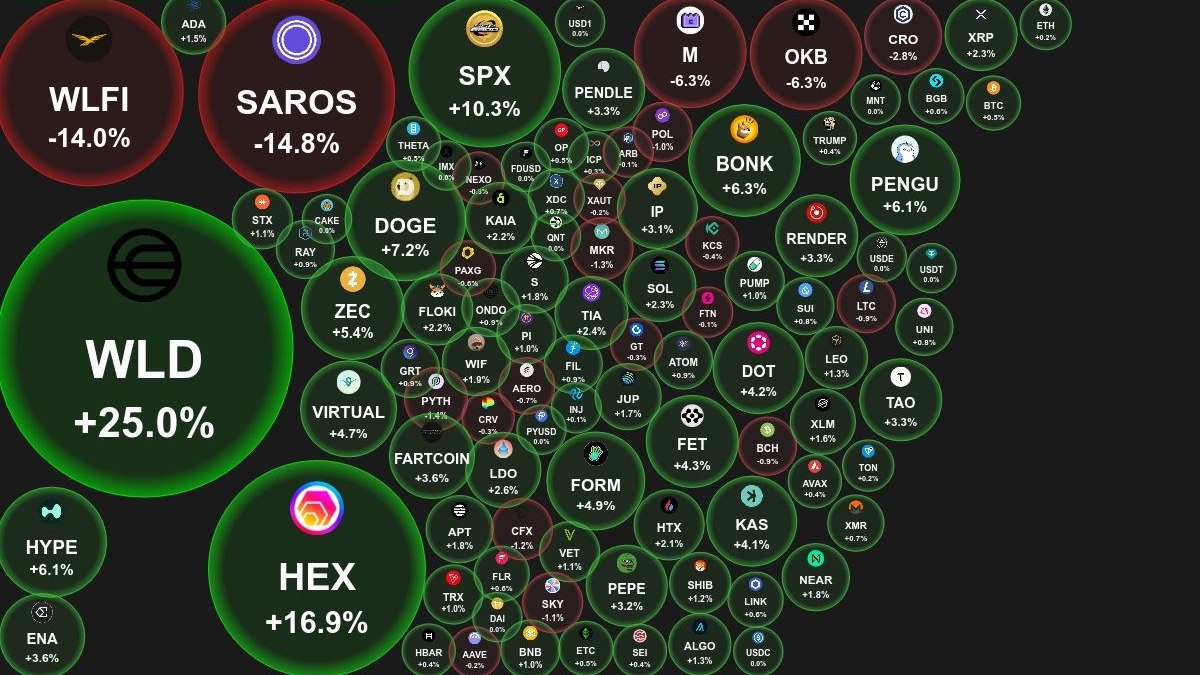 📊 Ежедневный обзор рынка криптовалют от Coinbubbles.ru 🗓 08.09.2025 09:30 по Москве. 🔗 Посмотреть на сайте 📈 Лидеры роста (из ТОП-100): 🟢 Worldcoin (WLD): $1.2797 (+25%) 🟢 HEX (HEX): $0.0097 (+16.9%) 🟢 SPX6900 (SPX): $1.2753 (+10.3%) 📉 Лидеры падения (из ТОП-100): 🔴 Saros (SAROS): $0.3070 (-14.8%) 🔴 World Liberty Financial (WLFI): $0.2078 (-14%) 🔴 OKB (OKB): $194 (-6.3%) 🔍 Основные метрики: 🟢 Общая капитализация: $3838.46 млрд (+0.70%) 🟢 Общий объем торгов: $96.03 млрд (+26.28%) 🔴 Доминация Bitcoin: 57.68% (-0.10%) 🔴 Доминация Ethereum: 13.52% (-0.06%) 🟢 Индекс страха и жадности: 51 / 100: ЖАДНОСТЬ (+7) 🔴 Индекс Альтсезона: 56 / 100: НЕ АЛЬТКОИН-СЕЗОН (-2) 📖 Интересные статьи: 👉 Все способы купить USDT за рубли в России 2025. 👉 Web3: Что такое интернет третьего поколения и почему он нужен? 👉 Биткоин или золото: куда вложить деньги в 2025 году