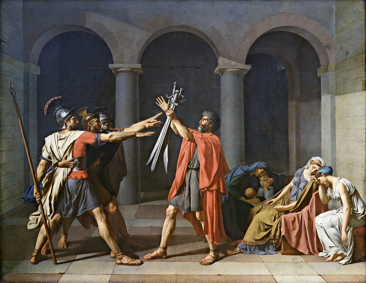 1785 г. Франция:: «Клятва Горациев» Жака-Луи Давида (Лувр, Париж) выставлена в Салоне и получила признание публики и критиков.