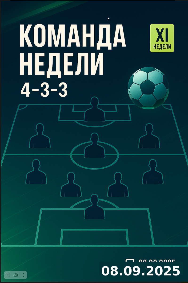 Вратарь — Ангус Ганн (Шотландия). Вытащил сложные моменты в Копенгагене и сохранил ноль в гостях у фаворита группы — образцовая выездная «чистая». The GuardianThe Scottish Sun Правый защитник — Сильван Видмер (Швейцария). Отработал по всей бровке и забил третий в разгроме Косова — капитанская, взрослая игра. Центрбек — Мануэль Аканджи (Швейцария). Открыл счёт ударом головой и цементировал оборону — лидерство чувствовалось в каждом эпизоде. Центрбек — Джон Суттар (Шотландия). Гасил все навесы и стыки, один из героев нулевой ничьей с Данией. Левый защитник — Энди Робертсон (Шотландия). Капитанский тонус: плотная работа сзади и острые подачи вперёд. Опорный полузащитник — Орельен Тчуамени (Франция). Съел центр поля у Украины, разогнал решающую атаку и отдал пас под гол Мбаппе. Полузащитник — Николо Барелла (Италия). Темпо‑ритм Адзурри: давление, продвижение мяча и участие в голевых атаках после перерыва. Полузащитник — Гранит Джака (Швейцария). Диктовал темп и баланс — через него стро