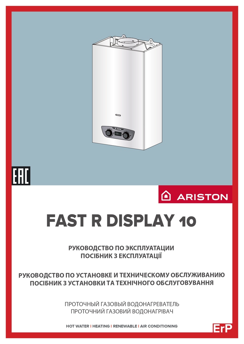Руководство по эксплуатации газовой колонки Ariston FAST R DISPLAY 10L NG