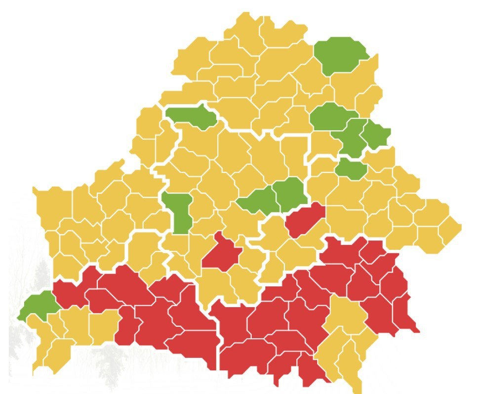 По данным интерактивной карты Министерства лесного хозяйства Республики Беларусь, по состоянию на 09:20, в 27 районах страны 8 августа