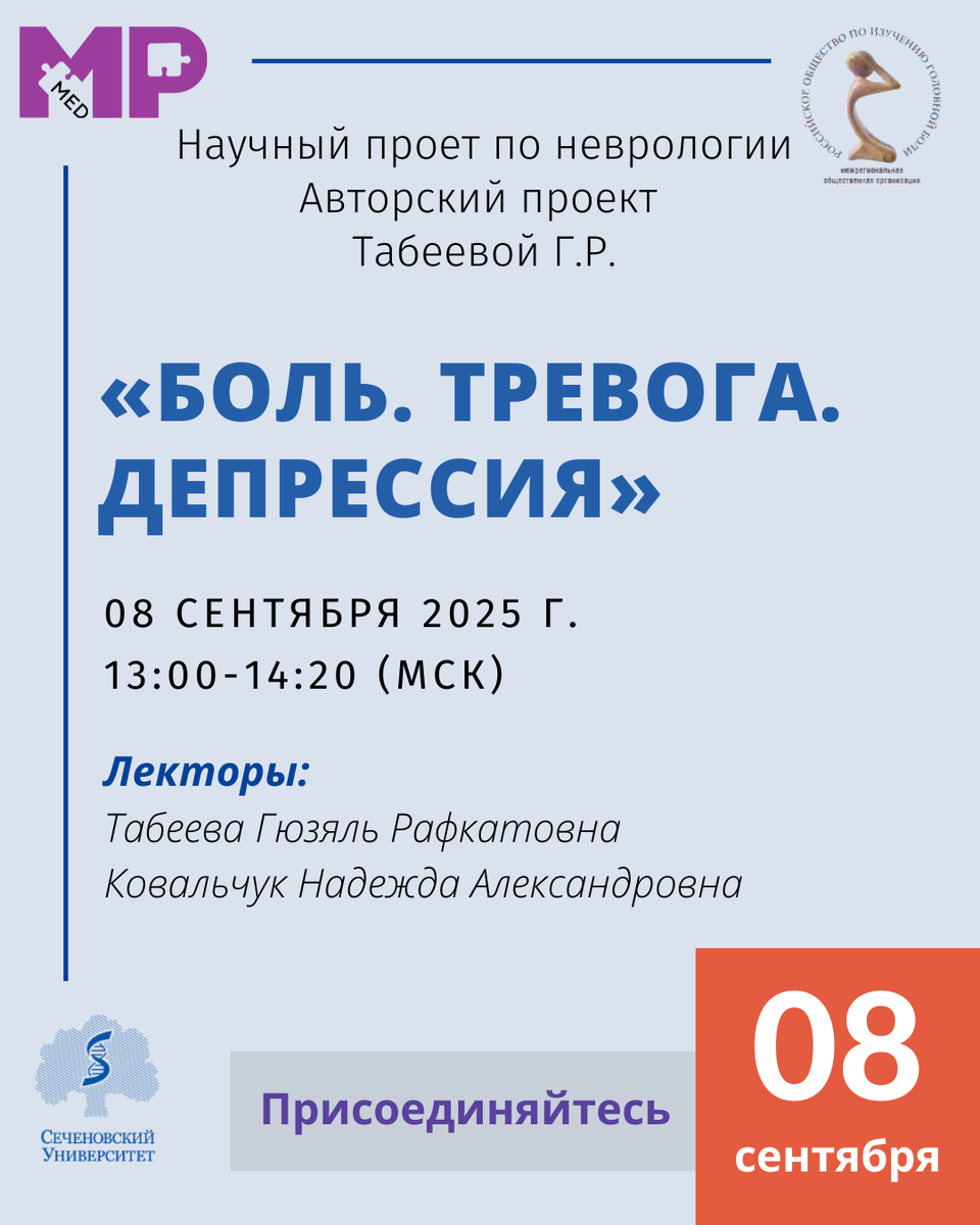 Уважаемые коллеги, приглашаем вас принять участие в Авторском проекте Табеевой Г.Р. «Боль. Тревога. Депрессия»