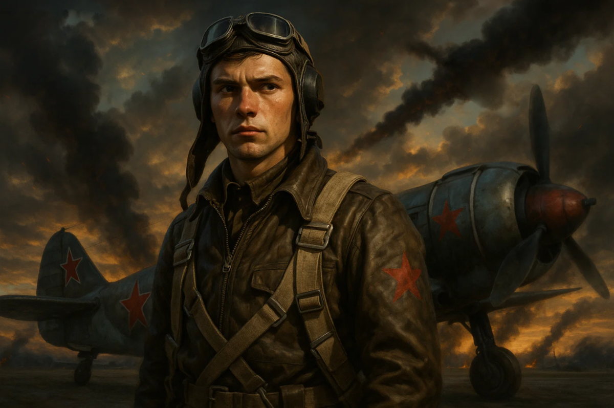 В 23 года он уже носил две золотые Звезды. Четыре десятка сбитых самолётов, сотни вылетов, ожоги, ранения — и всё это за каких-то три года войны. Жизнь летчика-истребителя Виталия Попкова — словно сжатая пружина, раскрывшаяся в грозовом небе Великой Отечественной. Родился он в Москве в 1922 году. Мальчишка с обычного двора, увлечённый моделями самолётов, мечтал только о небе. В аэроклубе, в училище он оказался среди тех, кто с первых шагов шёл навстречу будущей войне. И когда в 1942 году Попков впервые поднялся в небо фронта, ему было всего двадцать. Его первый самолёт — ЛаГГ-3 — стал и крестом, и испытанием. В июле 1942-го под Ржевом у него закончились боеприпасы, а в небе остался друг и командир Павел Песков, атакуемый немцами. Попков не ушёл. Подставил себя под очередь «мессера», истребитель загорелся. Он успел выпрыгнуть, но парашют был прожжён, и только болотина спасла ему жизнь. 60% тела обожжено, шесть пластических операций. Другой на его месте мог бы уйти с войны. Но Попков вер