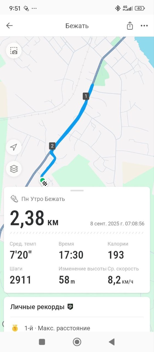 Решил: зачем откладывать на пятницу, то что можно пробежать сегодня)) Пробежал побольше сегодня уже. При этом темп как-то сам чуть ускоряется.