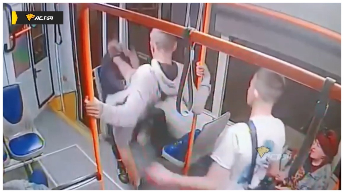 Скриншот из видео тг-канала «АСТ-54» «Драка» произошла в 15-ом трамвае на остановке «Кирзавод» 6 сентября после 9-ти часов вечера. Один из пассажиров трамвая сделал замечание зацеперам, небезопасно катавшимся на внешних частях трамвайного вагона. За это хулиганы залили его перцовкой. Далее к ним на помощь пришли их друзья, которые повторно залили мужчину перцем и избили. В результате мужчина за своё замечание получил сломанные рёбра и наверняка ожог слизистой глаз. Информация от врачей попала к сотрудникам МВД. Сотрудники регионального управления СКР возбудили уголовное дело по ч. 2 ст. 213 УК (групповое хулиганство), дело на контроле у Бастрыкина. Ранее мы писали о новосибирце, выпавшем из окна и сломавшем рёбра. Марина Злобина