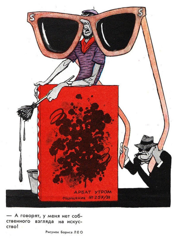 1963. Борис Лео (1904–1975). «– А говорят, у меня нет собственного взгляда на искусство!» На картине подпись: «Арбат утром. Ощущение № 257/31»