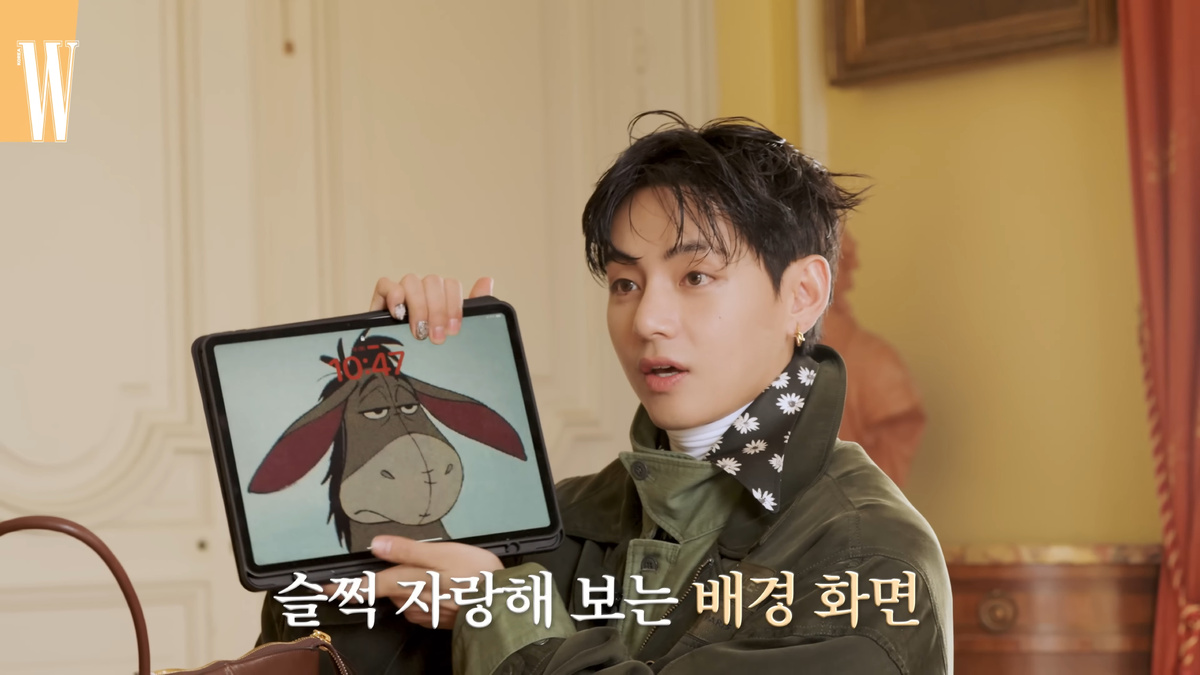 Ви из BTS наконец приоткрыл поклонникам завесу тайны своей личной жизни — от вещей, которые он всегда носит с собой, до особенностей сна и трогательных воспоминаний о концертах. 11 августа W Korea опубликовали видео «Что в моей сумке?» под названием «Первое откровение! Настоящие любимые вещи Ви, которые он привёз с собой в Париж. Почему Ви плакал на концерте Джей-Хоупа?» Первым делом он представил брелок, прикреплённый к его сумке люксового бренда, пояснив: «Обычно я не вешаю брелоки на сумку. Раньше я цеплял их разве что на ключи от машины, но этот был настолько красивым, что мне просто захотелось его взять. Я сказал бренду: “Пожалуйста, отдайте мне его”, и забрал». Он также обратил внимание на шарф на сумке, объяснив: «В мой первый день в Париже я был так взволнован, что сразу начал носить этот шарф. До сих пор его использую — иногда на сумке, вокруг талии, на шее или даже как головной платок. Есть много способов его носить. Идеи я подсматриваю у других людей». Первым предметом, кото