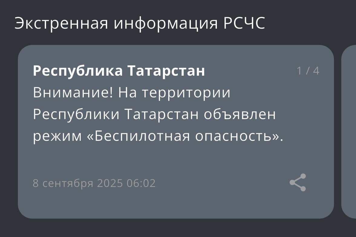 На территории Татарстана с 06:02 действует режим «Беспилотная опасность». 🌟 Tatarstan News