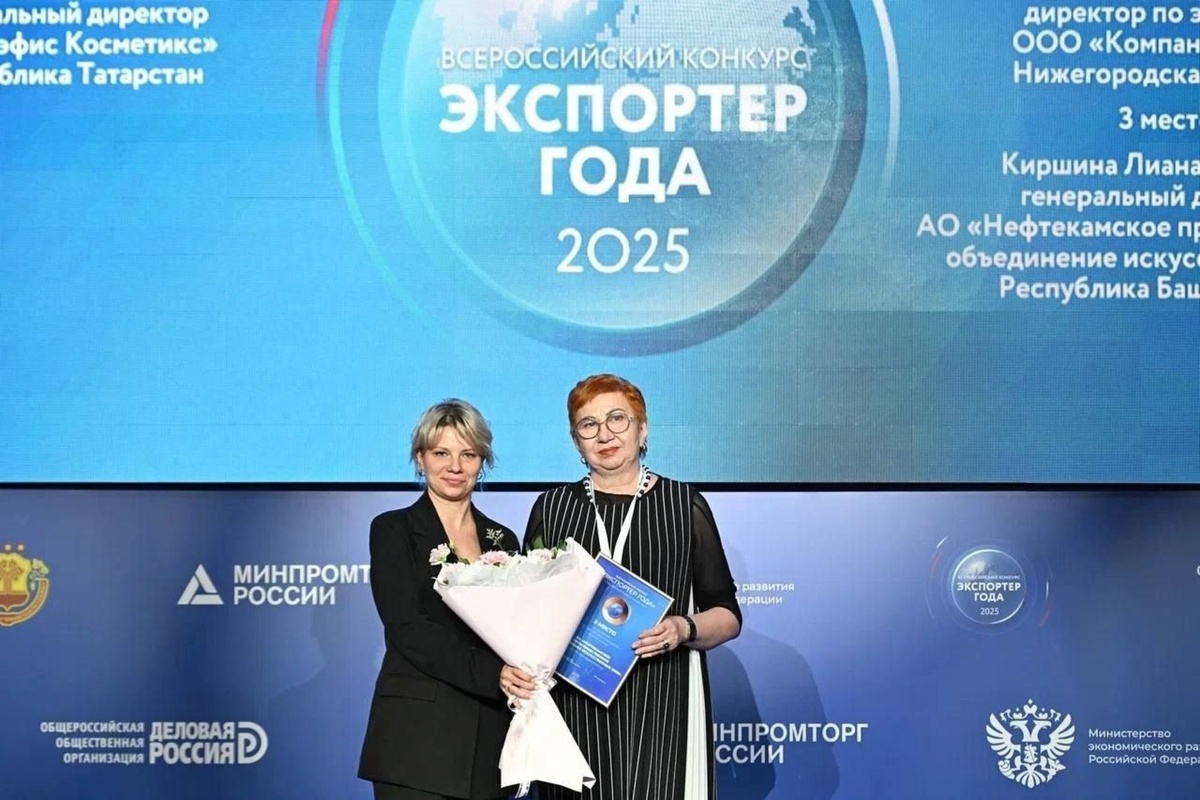 Предпринимательница из башкирского города Нефтекамска Лиана Киршина стала лауреатом окружного этапа Всероссийской премии «Экспортёр года», заняв третье место в номинации «Лучшая женщина - экспортёр. Крупный бизнес».