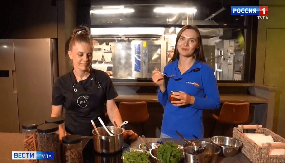 – Теперь добавляем пряных трав. Это у нас лимонная мята, базилик. А говорят, что мяту, чтобы она заработала, её нужно похлопать. Как битые огурцы, только битая мята.