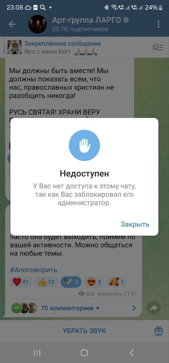 Наши Дорогие! Произошел сбой! Проверьте можете ли вы писать комментарии в группе ??? У кого такая табличка высветится - что доступ в канал пропал и вы заблокированы - пишите в личку @ksssnd. Попробуем разобраться ‼️❗️