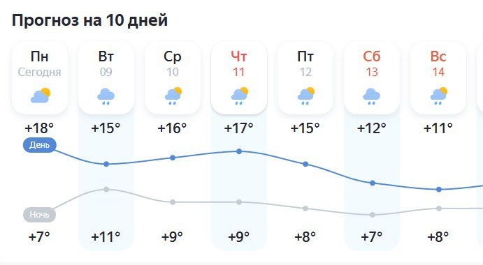 ☁️⛅⛈️На этой рабочей неделе в центральных и южных районах Красноярского края осадки сохранятся, а по ночам станет по-осеннему прохладно. Понедельник станет единственным днем недели, когда, по данным погоды на Яндекс, осень, подарит ясный денек без дождя. Днем воздух прогреется до +18 градусов. А вот ночью всего +8. Во вторник уже пасмурно, и вернутся осадки. Днем столбик термометра не поднимется выше +14 градусов. Ветер будет дуть восточный, несильный, всего около 2 м/с. В среду утром небольшой дождь, а потом обещает распогодиться. Синоптики прогнозируют в течение дня без осадков и облачно с прояснениями. В светлое время суток до +16. В ночь на четверг всего 10 градусов выше нуля. Днем опять переменная облачность и небольшой дождь. Ветер начнет меняться, к вечеру в четверг подует холодный северный ветер, который принесет похолодание. Днем в пятницу не выше +15 градусов, осадки. К выходным столбик термометра даже днем будет на отметке около +10.