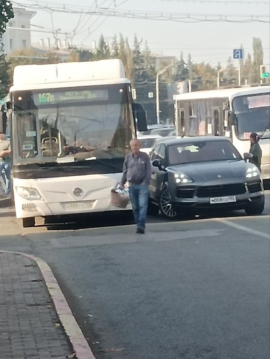 Женщина за рулём Порша решила прижать наш автобус.