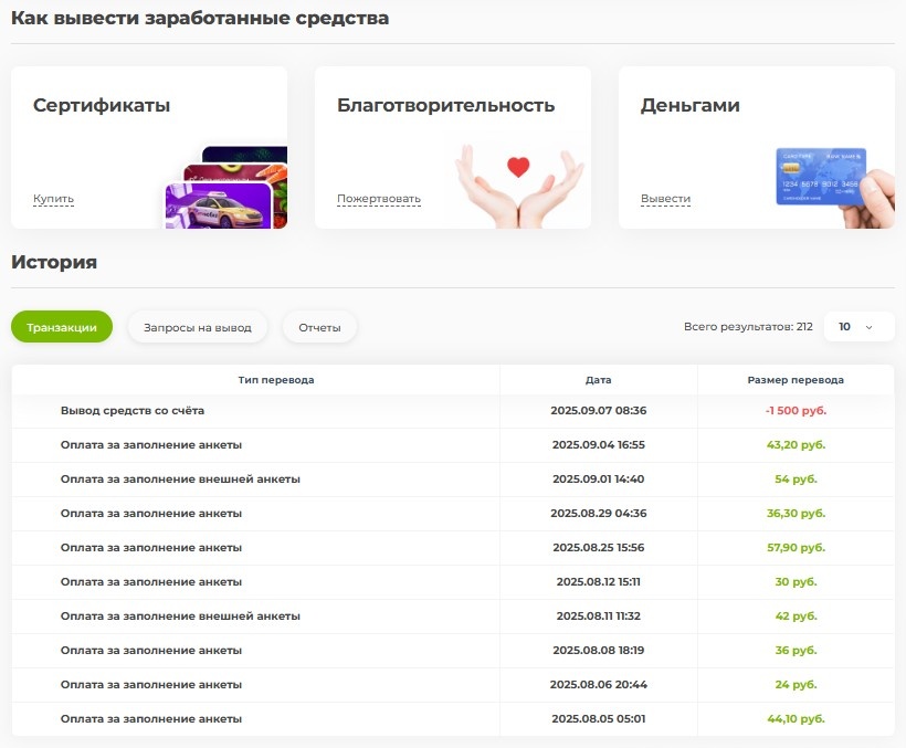 Про anketolog.ru я писала ранее. Это опросник. Единственный опросник, на котором я задержалась, так как тут реально можно заработать. Я из большого города, репутация у меня на сайте уже солидная, а потому я получаю до 4-5 опросов в сутки, стоимость которых составляет в среднем 40 рублей. Да не под все опросы мой профиль подходит, не все заполняю я и деньги не ахти какие, но от нечего делать заполняя их, в нужный момент могу вывести небольшую денежку и купить, например, продуктов черед доставку, как сделала вчера.