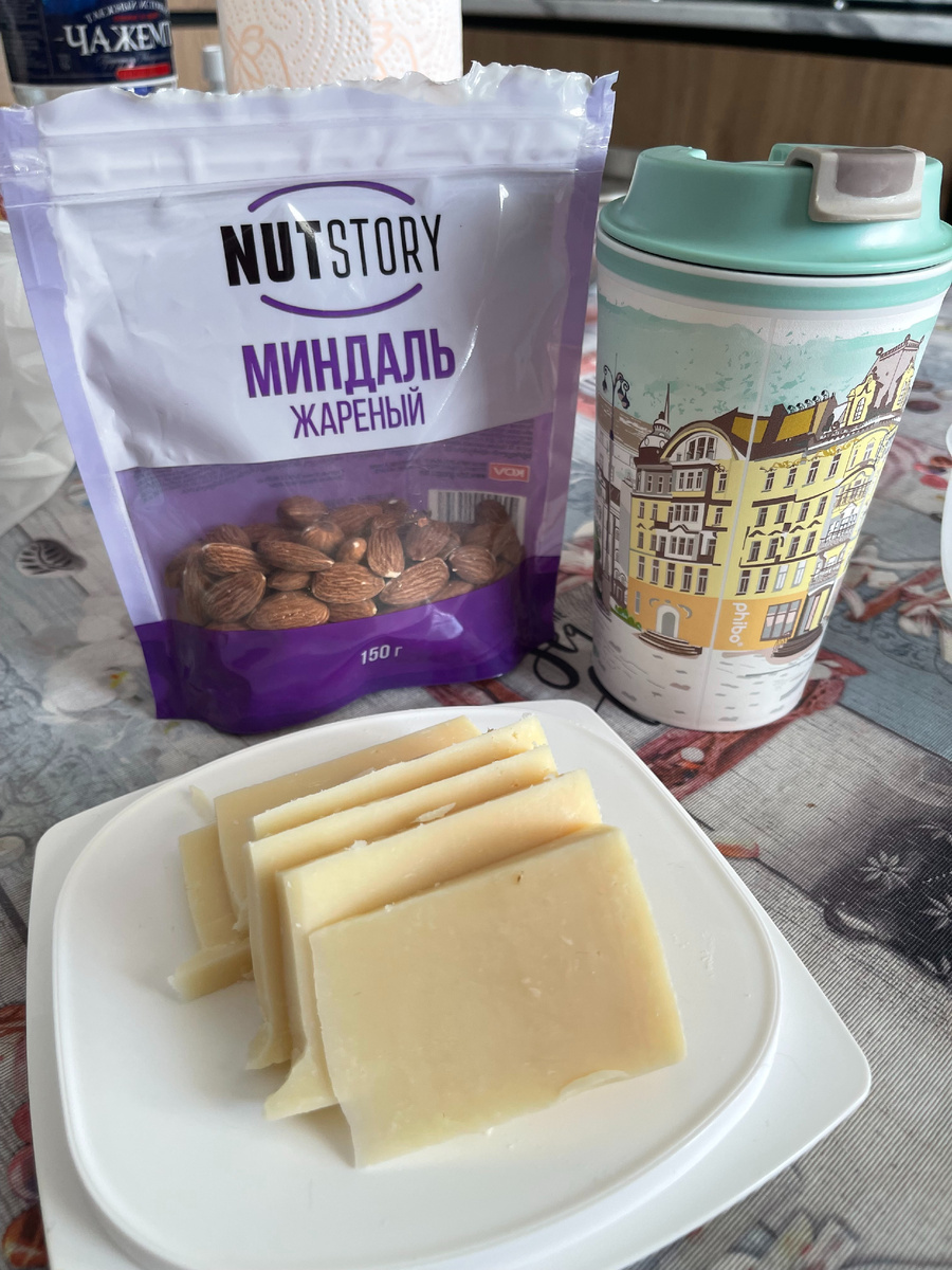 - из любимого на этой неделе: свиной шашлык, сыр Пармезан, орехи фундук и миндаль, на десерт - кокосовые чипсы.
