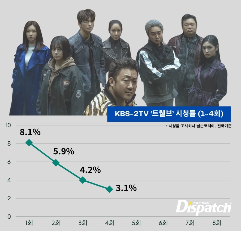 Сериал «Двенадцать» стартовал с рейтинга 8,1%, но к 4 серии он снизился до 3,1%. Зрители считают, что рейтинг может опуститься ещё ниже из-за банального сюжета, неудачной режиссуры и слабой компьютерной графики.