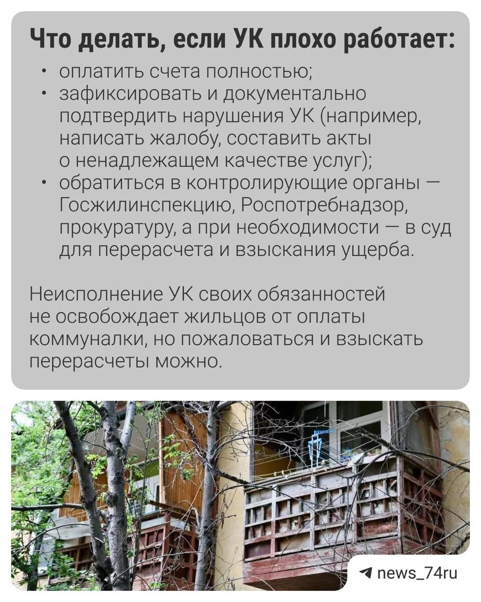 В ответ на пост Владелец скандальной «управляйки» под арестом. А по счетам челябинцам платить? Гендиректора и собственника «УКИКО» Виктора Старокожева обвиняют в мошенничестве, суд отправил его под домашний арест. Но УК продолжает управлять 557 домами в Челябинской области и рассылает квитанции. Жильцы боятся, что деньги уйдут в пустоту, и не понимают, платить им или нет. «Руководитель „УКИКО“ задержан по обвинению в недобросовестном исполнении взятых на себя обязательств по обслуживанию многоквартирных домов. Но квитанции от его УК как приходили, так и приходят — на четыре-пять тысяч рублей в месяц, долги копятся. А смысл сейчас платить, если деньги уйдут в никуда? Что с этим делать, как быть?» — обратились за советом жильцы многострадальных старых домов. Как утверждают читатели, никакой работы по обслуживанию не ведется. 🗯 Мнения юристов. Совсем не платить по счетам нельзя, ведь услуги оказывает не лично директор, а УК, отметил управляющий партнер адвокатского бюро «Юг» Юрий Пус