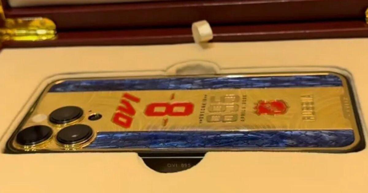 Супруга капитана «Вашингтона» Анастасия показала в сториз соцсети подарок, который сделали ее мужу в честь рекорда по голам в НХЛ. В минувшем регулярном чемпионате НХЛ 39-летний форвард стал лучшим снайпером в истории лиги, побив рекорд Уэйна Гретцки. На счету российского хоккеиста 897 шайб в рамках регулярок, канадец занимает второе место с 894 голами. Рекордной стала 895-я шайба, которую Овечкин забросил в ворота «Айлендерс» 6 апреля. «Вот такой телефон нам подарили», – сказала жена хоккеиста в записанном ей видеоролике. Отметим, что на телефоне есть эксклюзивная гравировка. Его преподнесли в коробке со встроенным экраном, на котором воспроизводится видео с заброшенными шайбами Александра.