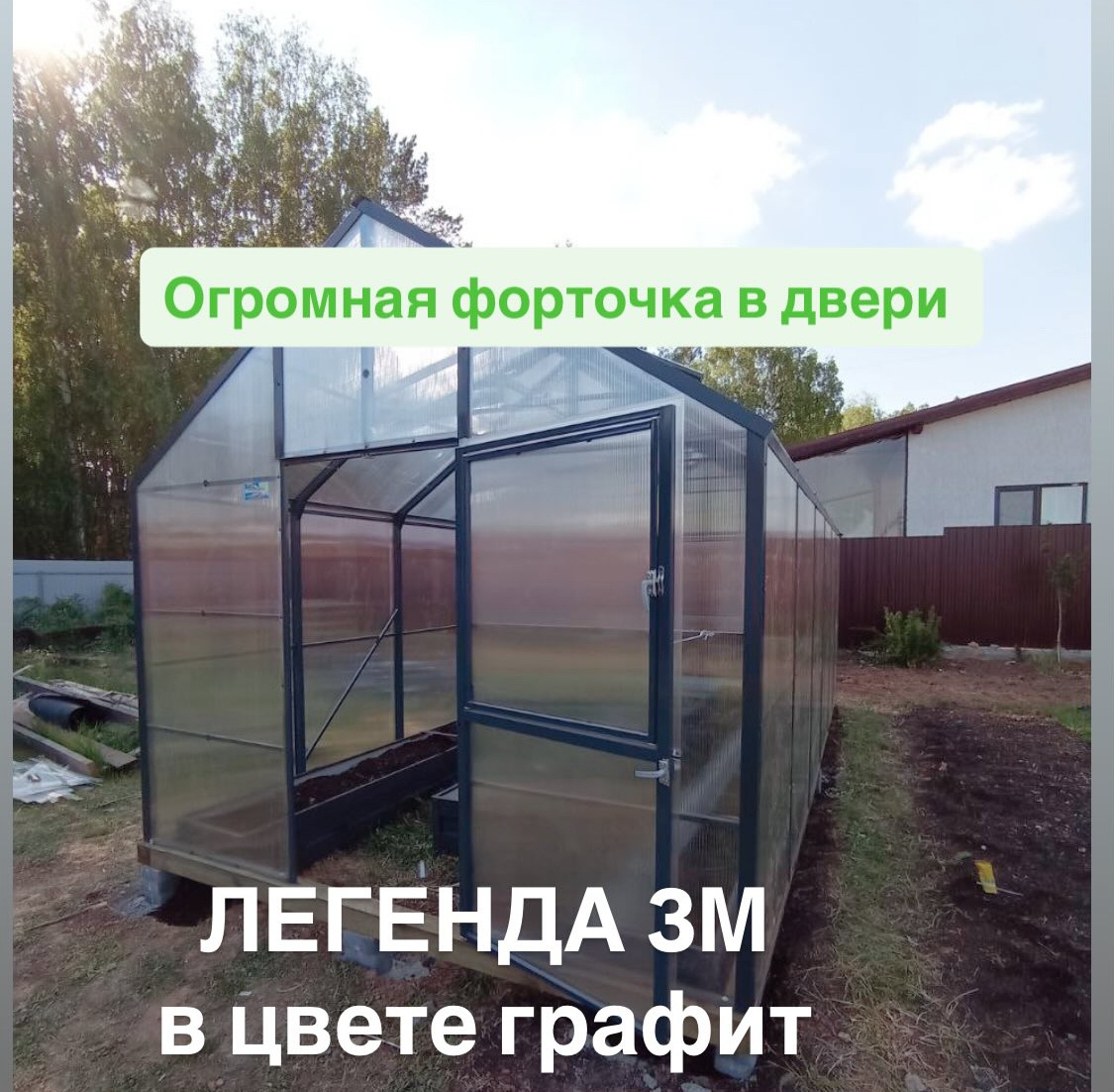 ГРАФИТ ЦВЕТ 7024. ТЕПЛИЦА. ОГРОМНАЯ И ВЫСОКАЯ. ЛЕГЕНДА 3М Компания Уральская Усадьба. Производство идеальных теплиц. Расскажем о теплицах, мечте многих садоводов и хите последних 10 лет. Ширина 3 метра Длина кратна 1 метр: 2-3-4-5-6-7 и т.д. Высота стен 1800мм Высота в коньке 2800мм Каркас изготовлен из оцинкованной профильной трубы трёх видов: 40/40; 20/40 и 20/20/1,4мм Защита от коррозии: гальваническое цинкование и полимерно порошковая покраска цвет 7024 ГРАФИТ темно серый Мощная и капитальная конструкция!! Комплектация: 1. Каркас капитальный с гарантией 10 лет 2. Сотовый поликарбонат 4мм Новатро, плотность 0,75 кг/м2 3. Защита сот поликарбоната: перфолента и торцевой профиль 4. Двери в торцах: с форточкой 5. Автоматические форточные блоки в коньке 6. Брус 100х100 7. Диагональные усилители в стенах 8. Грядки 9. Система подвязки растений Прекрасная двускатная классическая форма с высокими прямыми стенами. Целый дом для наших любимых растений