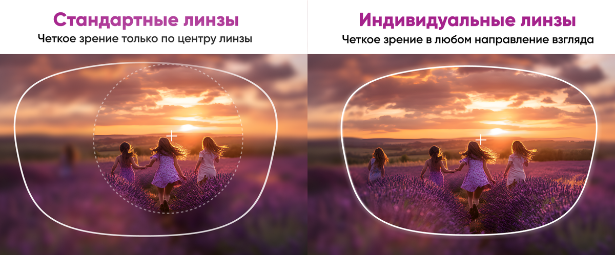 Индивидуальные линзы разрабатываются с учетом движения глаз пользователя, поэтому они позволяют комфортно видеть как в центре, так и по краям линзы. Это особенно важно при активных видах деятельности, вождении автомобиля, занятиях спортом. Разница особенно заметна у людей с высокой степенью миопии или гиперметропии, когда даже небольшие искажения могут вызывать дискомфорт.