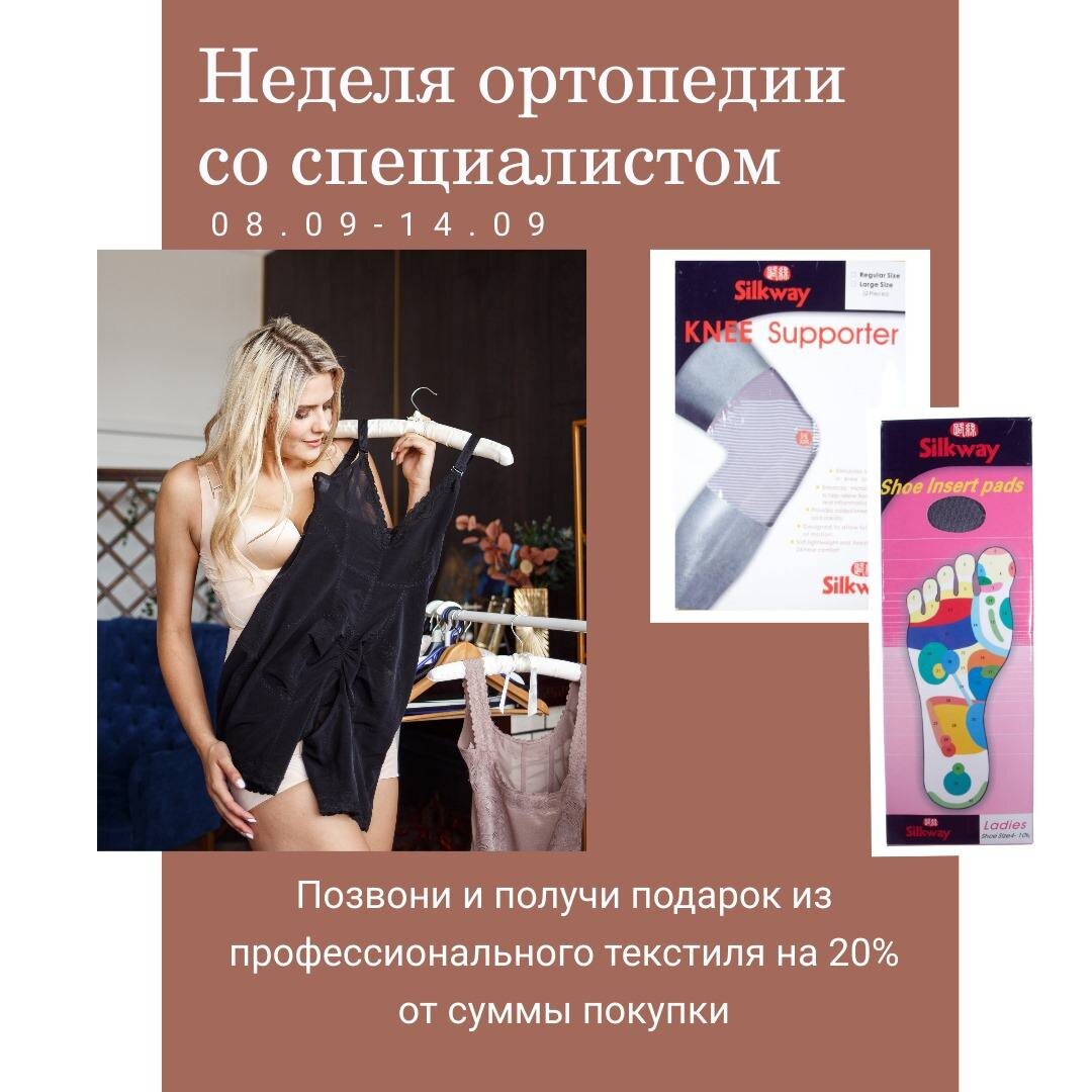 Начинается наша спецнеделя — Неделя ортопедии с экспертом по нарушению осанки! Только с 8 по 14 сентября вы можете получить профессиональную консультацию и эксклюзивные подарки. Вот почему стоит записаться прямо сейчас: - Забота о вашем здоровье и комфорте: наши эксперты помогут разобраться с проблемами осанки и дадут рекомендации, как избавиться от болей и сохранить спину в форме. - Индивидуальный подход: получите консультацию, учитывающую именно ваши особенности. - Подарок к каждой покупке: позвони и получи подарок из профессионального текстиля на 20% от суммы покупки, на покупку стелек или наколенников (правильные стельки и наколенники помогают снизить нагрузку на позвоночник и суставы). - Ограниченное время акции: акция действует всего неделю, не упустите шанс обновить ортопедический арсенал и получить полезный подарок! Позвоните нам сейчас и запишитесь на консультацию специалиста. _____________________ Звоните по телефонам: ☎️МСК- 89851141569 ☎️СПБ- 89650026553