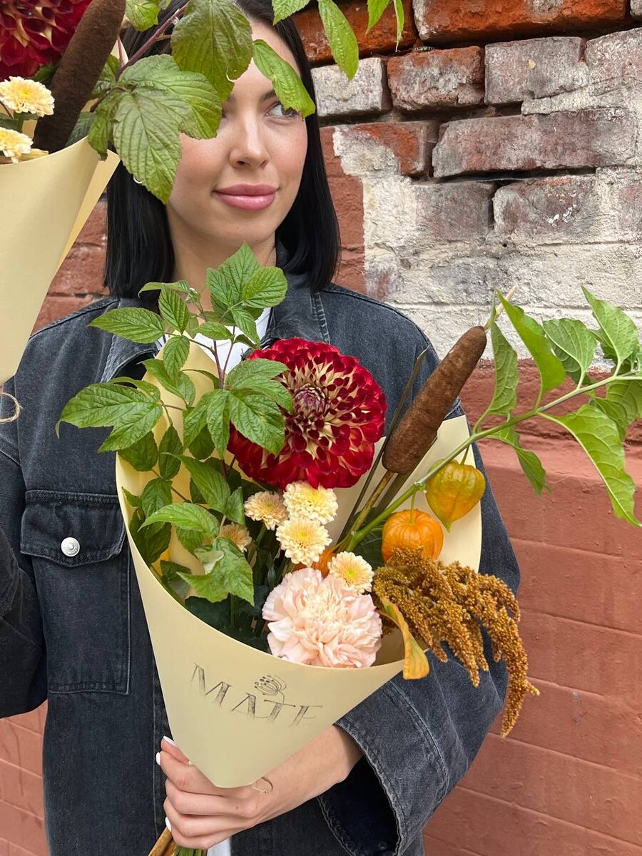 Вам подборка 🌼 — новая серия осенних букетиков по супер ценам! Ох уж этот сентябрь со своими цветочными крашами 😍Некоторые уже спрятались тут: 💐 в персиковом 2150 вместо 2600.- Далия/хризантема/амарант/физалис/диантус/малина 🌿 в зеленом 2550 вместо 3100.- Далия/гладиолус/агапантус/альстромерия/диантус/стифа/стрелиция 💐 в шоколадном 3150 вместо 3850.- Роза Кантр Блюз/леукоспермум/вибурнум/клематис/альстромерия/диантус/листья бука Для заказа: @mateflowers_bot