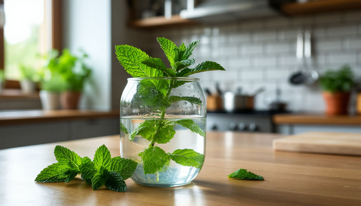 Совет для ленивых: не меняйте воду каждый день, просто доливайте свежую — мята любит стабильность.