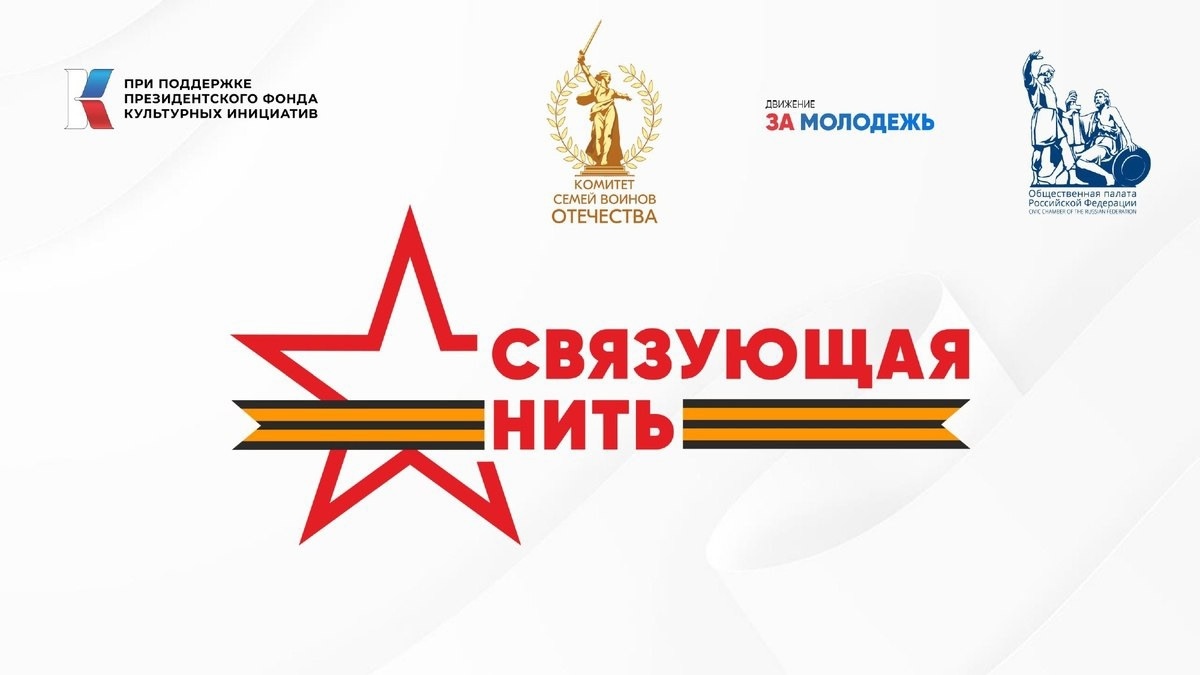 Дан старт Всероссийской историко-патриотической акции-конкурса «Связующая нить», которая проводится в рамках празднования 80-летия Победы в Великой Отечественной Войне и Года защитника Отечества. Проект реализуется с использованием гранта Президента Российской Федерации, предоставленного Президентским фондом культурных инициатив. Организаторами проекта выступают АНО «Комитет семей воинов Отечества» и Движение «За молодежь» при поддержке Общественной палаты Российской Федерации, Министерства просвещения Российской Федерации, Ассоциации ветеранов СВО, Союза семей военнослужащих России, Роспатриотцентра, Фонда «Социальная сфера», АНО «Интеграция». Проект поддержан председателем правления Союза кинематографистов России, народным артистом РСФСР, режиссером и сценаристом Н.С. Михалковым. В жюри и экспертный совет конкурса вошли известные писатели, видные деятели культуры, искусства, медиа, члены Общественной палаты России и другие общественные деятели. Цели конкурса: изучение гражданами ист
