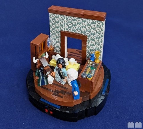 Минотавр в салоне: LEGO-диорама от John Tooker 🍵✨ Мифический Миндрос из Historica наслаждается чаепитием в изысканном интерьере