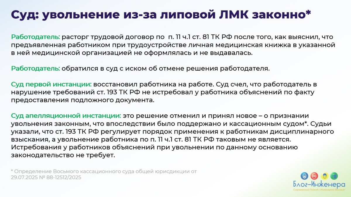 Увольнение работника из-за липовой ЛМК оказалось законным.
