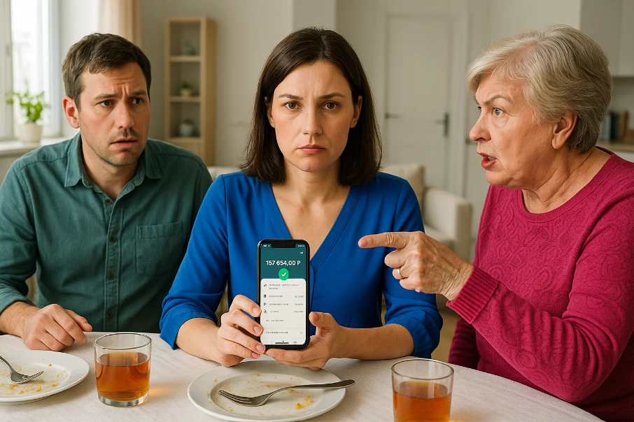 Свекровь смотрела на экран, бледнея. Гостьи тянули шеи, не веря цифрам.