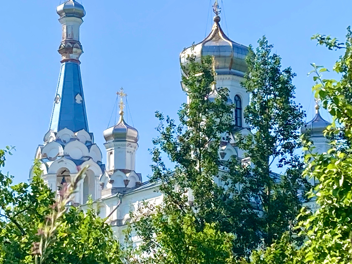 Впервые я увидела Александровскую церковь зимой. Стояла солнечная морозная погода, купола церкви, сверкали серебром в лучах солнца на фоне снежно-белого рельефа - смотрела и долго любовалась на расстоянии. История создания такова. Николай Первый являлся вдохновителем и подвижником в создании Александровской церкви. Церковь освящена летом 1854 года в память царицы Александры Римской. Архитектор Андрей Иванович Штакеншнейдер. В общем архитектурном облике прочитываются черты древнерусской храмовой архитектуры по принципу «восьмерик на четверике», то есть восьмигранный барабан на квадратном основании в сочетании с европейской, так называемой ордерской, диктующий триадность и устремленность конструкций ввысь. Андрей Иванович проявил себя, как тонкий знаток пропорций и стиля, мастерски соединив изящество, монументальность с традициями христианских церквей. Есть деталь архитектурного стиля, называемая закомары, которая прослеживается в византийских соборах, в Александровской церкви они то