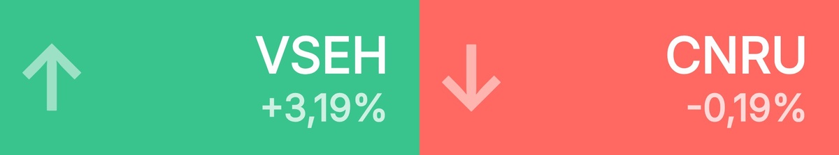 🔺 Топ-10 лидеров роста среди крупнейших акций: ВИ.ру • 81,29 ₽ • 3,19% Россети • 0,08 ₽ • 2,95% Европлан • 629 ₽ • 2,23% Ростелеком • 65,80 ₽ • 2,17% Медикал Гр • 1 270 ₽ • 2,09% РуссНефть • 122 ₽ • 2,01% ЕвроТранс • 142 ₽ • 1,97% Селигдар • 46,93 ₽ • 1,96% ЮМГ • 809 ₽ • 1,53% Мосэнерго • 2,28 ₽ • 1,49% 🔻 Топ-10 лидеров падения среди крупнейших акций: Циан • 622 ₽ • -0,19% Новатэк • 1 238 ₽ • -0,15% Татнефть • 663 ₽ • -0,14% Роснефть • 459 ₽ • -0,12% Татнефть п • 624 ₽ • -0,08%